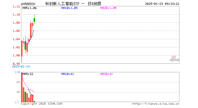 1月23日,科创板人工智能ETF(588930)开盘涨1.11%,报1.090元。科创板人工智能ETF(588930)重仓股方面,寒武纪开盘涨1.39%,石头科技涨0.12%,澜起科技涨2.36%,金山办公涨0.65%,恒玄科技涨2.82%,晶晨股份涨0.67%,芯原股份涨2.89%,乐鑫科技跌0.70%,中科星图涨1.22%,复旦微电涨1.34%。
