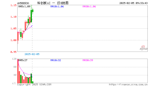 2月5日,科创板人工智能ETF(588930)开盘涨5.02%,报1.130元。科创板人工智能ETF(588930)重仓股方面,寒武纪开盘涨3.67%,石头科技涨1.41%,澜起科技涨2.78%,金山办公涨11.46%,恒玄科技涨1.51%,晶晨股份涨3.43%,芯原股份涨3.69%,乐鑫科技涨2.00%,中科星图涨1.35%,复旦微电涨4.40%。