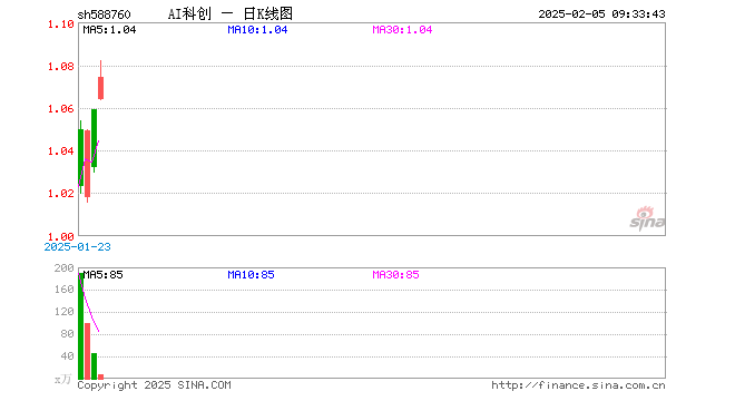 2月5日,人工智能ETF科创(588760)开盘涨3.10%,报1.064元。人工智能ETF科创(588760)重仓股方面,寒武纪开盘涨3.67%,石头科技涨1.41%,澜起科技涨2.78%,金山办公涨11.46%,晶晨股份涨3.43%,恒玄科技涨1.51%,芯原股份涨3.69%,乐鑫科技涨2.00%,中科星图涨1.35%,云天励飞涨5.59%。