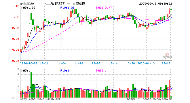 2月10日,人工智能ETF(515980)开盘涨0.85%,报1.069元。人工智能ETF(515980)重仓股方面,中际旭创开盘涨2.67%,中科曙光涨0.23%,寒武纪涨1.85%,科大讯飞涨1.05%,韦尔股份涨0.22%,金山办公涨0.02%,新易盛涨1.53%,澜起科技涨0.84%,紫光股份涨2.51%,浪潮信息涨1.19%。