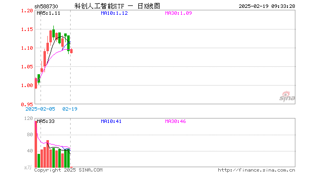 2月19日,科创人工智能ETF(588730)开盘跌0.46%,报1.085元。科创人工智能ETF(588730)重仓股方面,寒武纪开盘涨0.06%,石头科技跌0.31%,澜起科技涨0.83%,金山办公跌0.55%,晶晨股份跌0.54%,恒玄科技跌1.02%,芯原股份跌0.26%,乐鑫科技跌0.48%,中科星图涨0.00%,复旦微电涨0.73%。