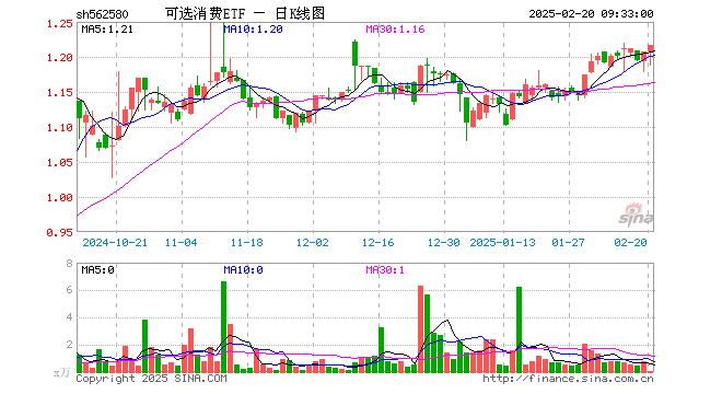 2月20日,可选消费ETF(562580)开盘涨0.00%,报1.207元。可选消费ETF(562580)重仓股方面,美的集团开盘跌0.06%,比亚迪涨1.39%,格力电器跌0.21%,海尔智家跌0.08%,福耀玻璃跌0.40%,赛力斯涨1.68%,上汽集团涨0.00%,长安汽车跌0.30%,中国中免跌0.43%,三花智控跌0.40%。