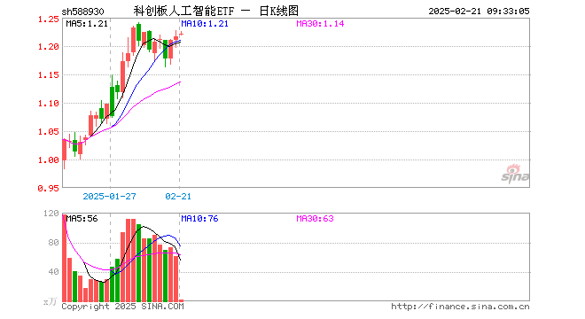 2月21日,科创板人工智能ETF(588930)开盘涨0.25%,报1.220元。科创板人工智能ETF(588930)重仓股方面,寒武纪开盘涨4.28%,石头科技涨0.51%,澜起科技涨0.77%,金山办公涨0.01%,恒玄科技跌2.44%,晶晨股份涨0.17%,芯原股份涨0.09%,乐鑫科技跌1.81%,中科星图涨0.13%,复旦微电涨0.53%。