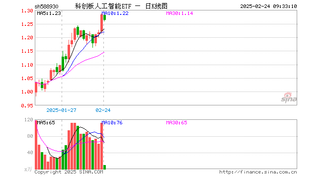 2月24日,科创板人工智能ETF(588930)开盘跌0.16%,报1.281元。科创板人工智能ETF(588930)重仓股方面,寒武纪开盘涨0.24%,石头科技跌0.17%,澜起科技涨0.90%,金山办公跌1.51%,恒玄科技跌0.77%,晶晨股份跌0.10%,芯原股份涨0.42%,乐鑫科技跌1.72%,中科星图跌0.96%,复旦微电涨0.38%。