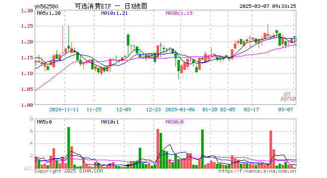 3月7日,可选消费ETF(562580)开盘涨0.50%,报1.216元。可选消费ETF(562580)重仓股方面,美的集团开盘跌0.03%,比亚迪跌0.01%,格力电器跌0.28%,海尔智家跌0.30%,福耀玻璃跌0.30%,赛力斯涨0.99%,上汽集团跌0.42%,长安汽车跌0.15%,中国中免跌0.79%,三花智控跌0.47%。
