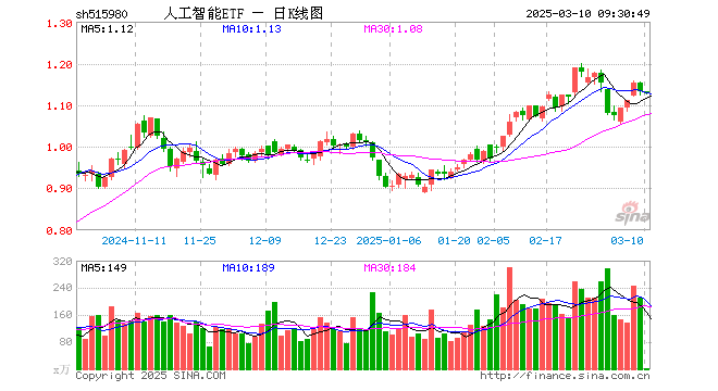 3月10日,人工智能ETF(515980)开盘跌0.18%,报1.131元。人工智能ETF(515980)重仓股方面,中际旭创开盘涨0.00%,中科曙光跌0.40%,寒武纪涨0.00%,科大讯飞涨1.89%,韦尔股份跌0.03%,金山办公跌0.47%,新易盛涨0.22%,澜起科技涨0.00%,紫光股份跌1.11%,浪潮信息跌0.57%。