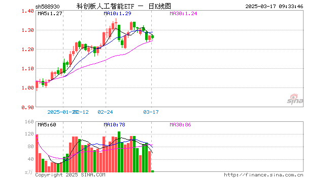 3月17日,科创板人工智能ETF(588930)开盘涨0.08%,报1.269元。科创板人工智能ETF(588930)重仓股方面,寒武纪开盘跌0.41%,石头科技涨0.73%,澜起科技涨0.04%,金山办公涨0.05%,恒玄科技涨0.19%,晶晨股份涨0.21%,芯原股份跌0.54%,乐鑫科技跌3.18%,中科星图涨2.25%,复旦微电涨0.88%。