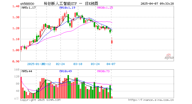 4月7日,科创板人工智能ETF(588930)开盘跌8.62%,报1.060元。科创板人工智能ETF(588930)重仓股方面,寒武纪开盘跌5.96%,石头科技跌10.77%,澜起科技跌9.08%,金山办公跌4.76%,恒玄科技跌11.47%,晶晨股份跌9.47%,芯原股份跌5.63%,乐鑫科技跌12.82%,中科星图跌6.56%,复旦微电跌4.55%。
