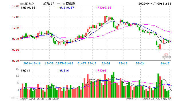 4月17日,人工智能ETF(159819)开盘跌0.57%,报0.870元。人工智能ETF(159819)重仓股方面,寒武纪开盘跌0.15%,海康威视跌0.56%,中际旭创跌1.15%,中科曙光跌0.80%,科大讯飞跌0.54%,韦尔股份跌0.34%,新易盛涨0.53%,澜起科技跌0.56%,金山办公跌1.01%,紫光股份跌0.92%。
