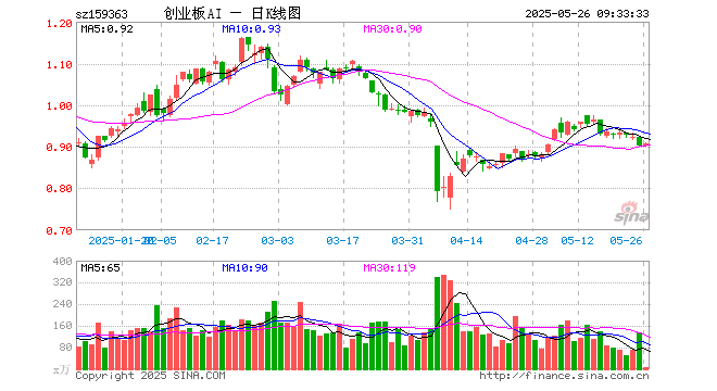 5月26日,创业板人工智能ETF华宝(159363)开盘跌0.11%,报0.901元。创业板人工智能ETF华宝(159363)重仓股方面,新易盛开盘涨0.92%,中际旭创涨0.13%,软通动力涨0.36%,润泽科技涨0.23%,天孚通信跌0.16%,深信服跌0.39%,网宿科技涨0.38%,全志科技跌0.18%,光环新网涨0.00%,北京君正涨0.00%。