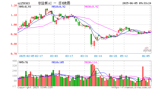 6月5日,创业板人工智能ETF华宝(159363)开盘涨0.00%,报0.934元。创业板人工智能ETF华宝(159363)重仓股方面,新易盛开盘涨2.00%,中际旭创涨0.00%,软通动力跌0.02%,润泽科技跌0.07%,天孚通信跌0.79%,深信服涨0.00%,网宿科技涨0.38%,全志科技跌0.29%,光环新网涨0.00%,北京君正涨0.37%。