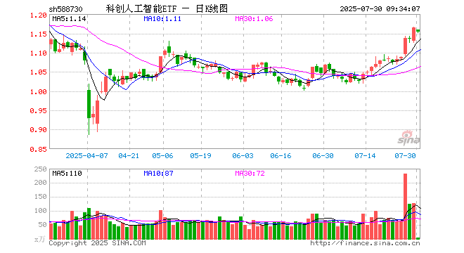 科创人工智能ETF(588730)业绩比较基准为上证科创板人工智能指数收益率,管理人为易方达基金管理有限公司,基金经理为刘文魁,成立(2025-01-16)以来回报为16.38%,近一个月回报为11.29%。