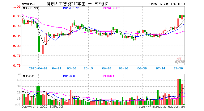 科创人工智能ETF华宝(589520)业绩比较基准为上证科创板人工智能指数收益率,管理人为华宝基金管理有限公司,基金经理为丰晨成、曹旭辰,成立(2025-03-05)以来回报为-4.40%,近一个月回报为11.15%。