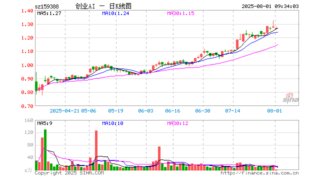 8月1日,创业板人工智能ETF国泰(159388)开盘跌1.41%,报1.260元。创业板人工智能ETF国泰(159388)重仓股方面,中际旭创开盘跌2.34%,新易盛跌2.15%,天孚通信跌0.60%,软通动力涨0.31%,润泽科技涨0.42%,全志科技涨0.05%,景嘉微涨0.20%,深信服涨1.37%,北京君正涨0.22%,网宿科技涨3.11%。