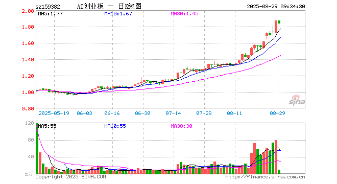 创业板人工智能ETF南方(159382)业绩比较基准为创业板人工智能指数收益率,管理人为南方基金管理股份有限公司,基金经理为潘水洋,成立(2025-04-23)以来回报为85.23%,近一个月回报为43.87%。