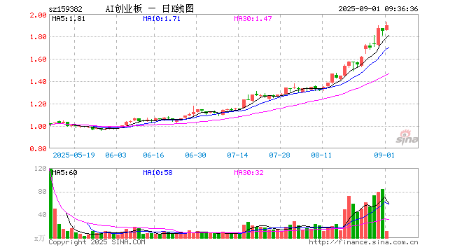 创业板人工智能ETF南方(159382)业绩比较基准为创业板人工智能指数收益率,管理人为南方基金管理股份有限公司,基金经理为潘水洋,成立(2025-04-23)以来回报为83.81%,近一个月回报为37.52%。