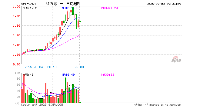9月8日,人工智能ETF基金(159248)开盘跌0.44%,报1.343元。人工智能ETF基金(159248)重仓股方面,新易盛开盘跌2.65%,中际旭创跌3.19%,寒武纪跌2.85%,科大讯飞涨0.32%,豪威集团涨0.46%,海康威视涨0.03%,中科曙光涨3.11%,澜起科技涨1.47%,金山办公涨0.07%,浪潮信息跌0.02%。