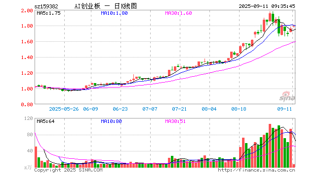 创业板人工智能ETF南方(159382)业绩比较基准为创业板人工智能指数收益率,管理人为南方基金管理股份有限公司,基金经理为潘水洋,成立(2025-04-23)以来回报为75.74%,近一个月回报为34.04%。