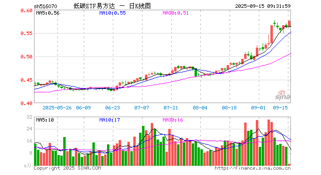 低碳ETF易方达(516070)业绩比较基准为中证内地低碳经济主题指数收益率,管理人为易方达基金管理有限公司,基金经理为张湛,成立(2021-04-15)以来回报为12.42%,近一个月回报为19.88%。