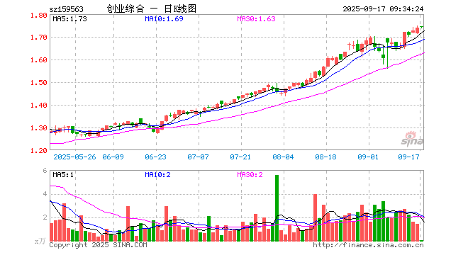 9月17日,创业板综ETF华夏(159563)开盘涨0.40%,报1.745元。创业板综ETF华夏(159563)重仓股方面,宁德时代开盘涨0.96%,东方财富跌0.36%,迈瑞医疗涨0.00%,中际旭创跌1.56%,汇川技术涨0.01%,蓝思科技涨0.63%,新易盛跌0.77%,爱尔眼科涨0.00%,胜宏科技跌1.70%,阳光电源涨0.35%。