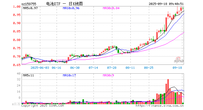 电池ETF(159755)业绩比较基准为国证新能源车电池指数收益率,管理人为广发基金管理有限公司,基金经理为罗国庆,成立(2021-06-15)以来回报为-0.88%,近一个月回报为30.70%。
