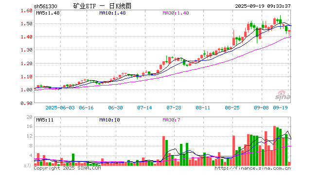 9月19日,矿业ETF(561330)开盘跌0.28%,报1.435元。矿业ETF(561330)重仓股方面,紫金矿业开盘涨0.00%,北方稀土跌0.62%,洛阳钼业涨0.00%,山东黄金跌0.39%,中国铝业涨0.65%,华友钴业跌0.73%,中金黄金涨0.89%,赤峰黄金涨0.36%,赣锋锂业涨1.52%,云铝股份涨0.30%。