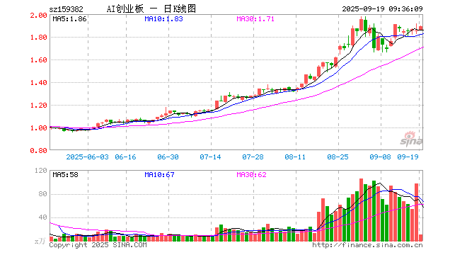 创业板人工智能ETF南方(159382)业绩比较基准为创业板人工智能指数收益率,管理人为南方基金管理股份有限公司,基金经理为潘水洋,成立(2025-04-23)以来回报为85.48%,近一个月回报为21.63%。