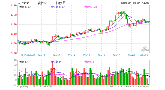9月23日,软件50ETF(159590)开盘跌0.41%,报1.226元。软件50ETF(159590)重仓股方面,科大讯飞开盘涨0.21%,金山办公跌0.16%,同花顺跌1.34%,恒生电子跌0.41%,润和软件跌0.58%,三六零跌0.80%,拓维信息跌1.26%,指南针跌3.24%,中国软件涨0.02%。