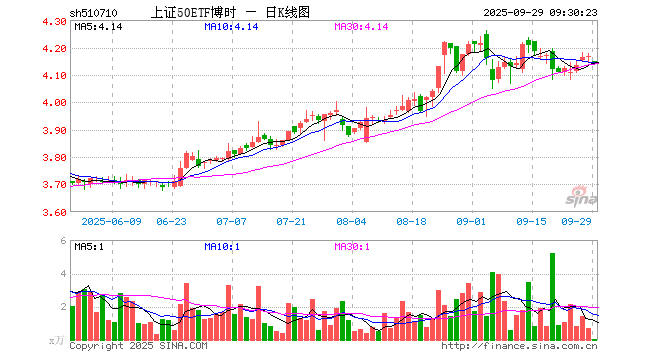 9月29日,上证50ETF博时(510710)开盘跌0.43%,报4.150元。上证50ETF博时(510710)重仓股方面,贵州茅台开盘涨0.31%,中国平安跌0.07%,招商银行跌0.07%,兴业银行跌0.30%,长江电力跌0.15%,紫金矿业涨1.09%,中信证券涨0.00%,工商银行跌0.40%,恒瑞医药跌0.41%,国泰海通跌0.48%。