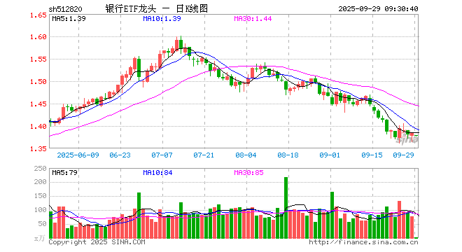 9月29日,银行ETF龙头(512820)开盘跌0.29%,报1.379元。银行ETF龙头(512820)重仓股方面,招商银行开盘跌0.07%,兴业银行跌0.30%,工商银行跌0.40%,交通银行涨0.00%,农业银行跌0.45%,江苏银行跌0.20%,浦发银行涨0.00%,民生银行涨0.00%,平安银行涨0.00%,上海银行涨0.00%。