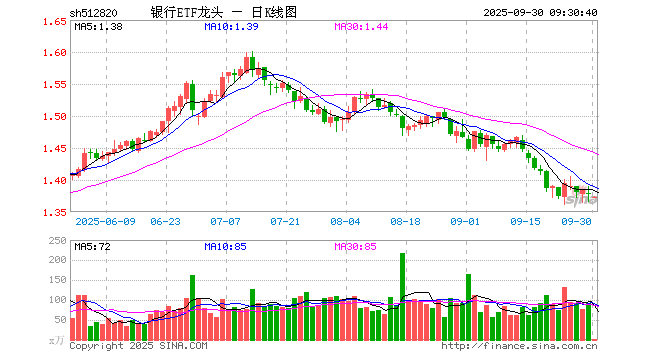 9月30日,银行ETF龙头(512820)开盘跌0.44%,报1.372元。银行ETF龙头(512820)重仓股方面,招商银行开盘跌0.07%,兴业银行涨0.20%,工商银行跌0.27%,交通银行涨0.15%,农业银行跌0.15%,江苏银行涨0.20%,浦发银行涨0.08%,民生银行涨0.00%,平安银行涨0.00%,上海银行涨0.11%。