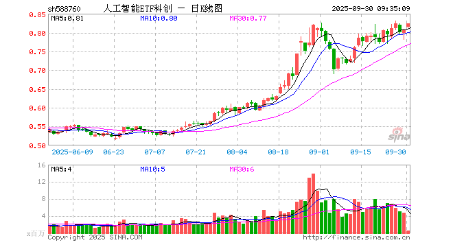 9月30日,人工智能ETF科创(588760)开盘涨1.12%,报0.815元。人工智能ETF科创(588760)重仓股方面,澜起科技开盘涨1.50%,寒武纪涨4.87%,金山办公涨1.95%,芯原股份涨2.38%,石头科技跌0.50%,恒玄科技跌0.50%,晶晨股份涨0.11%,复旦微电涨0.57%,中科星图涨0.66%,道通科技涨1.16%。