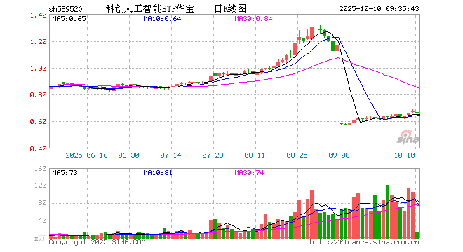 科创人工智能ETF华宝(589520)业绩比较基准为上证科创板人工智能指数收益率,管理人为华宝基金管理有限公司,基金经理为丰晨成、曹旭辰,成立(2025-03-05)以来回报为34.73%,近一个月回报为17.23%。