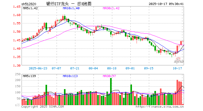 10月17日,银行ETF龙头(512820)开盘跌0.07%,报1.442元。银行ETF龙头(512820)重仓股方面,招商银行开盘跌0.12%,兴业银行跌0.10%,工商银行涨0.00%,交通银行涨0.00%,农业银行涨0.00%,江苏银行跌0.18%,浦发银行跌0.23%,民生银行涨0.00%,平安银行跌0.35%,上海银行跌0.31%。