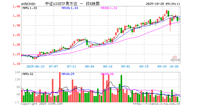 中证A50ETF易方达(563080)业绩比较基准为中证A50指数收益率,管理人为易方达基金管理有限公司,基金经理为林伟斌、李栩,成立(2024-03-06)以来回报为31.90%,近一个月回报为-0.38%。