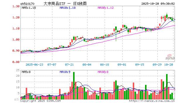 大宗商品ETF(510170)业绩比较基准为上证大宗商品股票指数 ,管理人为国联安基金管理有限公司,基金经理为黄欣,成立(2010-11-26)以来回报为45.17%,近一个月回报为5.98%。