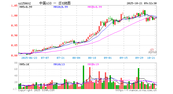 10月21日,中国A50ETF(159602)开盘涨0.71%,报0.989元。中国A50ETF(159602)重仓股方面,宁德时代开盘涨1.77%,紫金矿业涨2.18%,贵州茅台涨0.07%,比亚迪涨0.16%,招商银行涨0.17%,长江电力跌0.18%,海光信息涨0.20%,恒瑞医药涨0.57%,工业富联涨1.42%,万华化学涨0.38%。