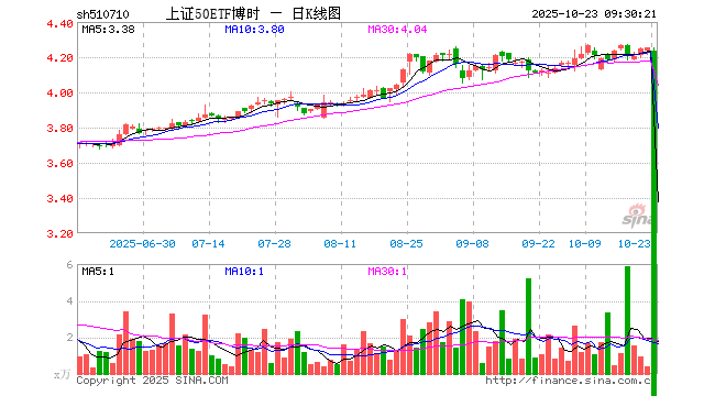 10月23日,上证50ETF博时(510710)开盘跌0.38%,报4.237元。上证50ETF博时(510710)重仓股方面,贵州茅台开盘跌0.25%,中国平安涨0.02%,招商银行涨0.00%,兴业银行涨0.15%,长江电力涨0.00%,紫金矿业跌1.43%,中信证券涨0.03%,工商银行涨0.00%,恒瑞医药跌0.38%,国泰海通跌0.11%。
