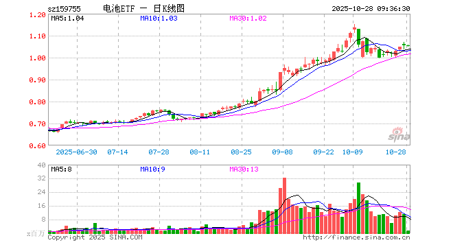电池ETF(159755)业绩比较基准为国证新能源车电池指数收益率,管理人为广发基金管理有限公司,基金经理为罗国庆,成立(2021-06-15)以来回报为5.56%,近一个月回报为2.80%。