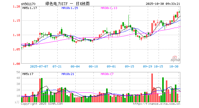 10月30日,绿色电力ETF(561170)开盘涨0.00%,报1.180元。绿色电力ETF(561170)重仓股方面,中国核电开盘跌1.47%,长江电力涨0.00%,三峡能源涨0.23%,国电电力跌0.19%,国投电力涨0.00%,华能国际跌0.24%,上海电力跌1.79%,川投能源跌0.13%,华电国际涨0.00%,浙能电力跌1.87%。