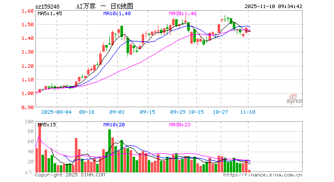 11月10日,人工智能ETF基金(159248)开盘涨0.00%,报1.441元。人工智能ETF基金(159248)重仓股方面,新易盛开盘涨0.05%,中际旭创跌0.24%,寒武纪跌0.17%,澜起科技涨1.48%,中科曙光涨0.04%,科大讯飞涨0.27%,豪威集团涨0.10%,海康威视涨0.03%,浪潮信息涨0.16%,金山办公涨0.72%。