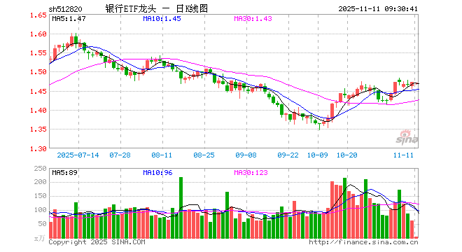 11月11日,银行ETF龙头(512820)开盘跌0.27%,报1.468元。银行ETF龙头(512820)重仓股方面,招商银行开盘跌0.07%,兴业银行跌0.09%,工商银行跌0.25%,农业银行涨0.00%,交通银行跌0.14%,江苏银行涨0.00%,浦发银行跌0.17%,平安银行跌0.09%,民生银行涨0.00%,上海银行跌0.29%。