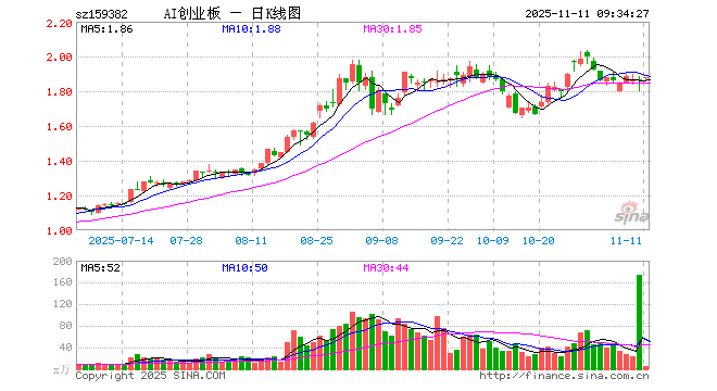 创业板人工智能ETF南方(159382)业绩比较基准为创业板人工智能指数收益率,管理人为南方基金管理股份有限公司,基金经理为潘水洋,成立(2025-04-23)以来回报为85.90%,近一个月回报为3.54%。
