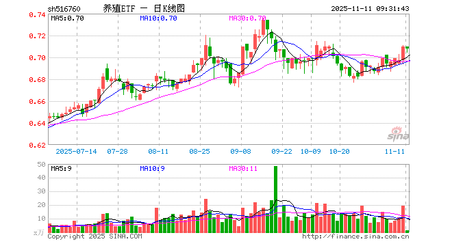 养殖ETF(516760)业绩比较基准为中证畜牧养殖指数收益率,管理人为平安基金管理有限公司,基金经理为翁欣,成立(2021-03-04)以来回报为-28.87%,近一个月回报为0.42%。