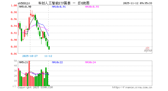 科创人工智能ETF国泰(589110)业绩比较基准为上证科创板人工智能指数收益率,管理人为国泰基金管理有限公司,基金经理为麻绎文,成立(2025-09-26)以来回报为-12.11%,近一个月回报为-9.70%。