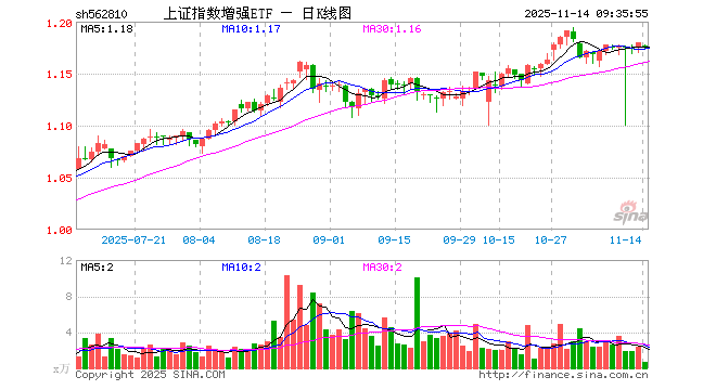 上证指数增强ETF(562810)业绩比较基准为上证综合指数收益率,管理人为嘉实基金管理有限公司,基金经理为尚可、张楠,成立(2025-03-05)以来回报为19.58%,近一个月回报为3.22%。