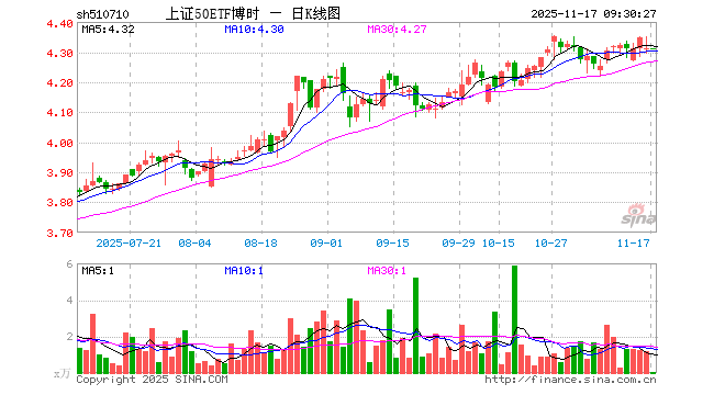 11月17日,上证50ETF博时(510710)开盘涨0.00%,报4.312元。上证50ETF博时(510710)重仓股方面,贵州茅台开盘跌0.18%,中国平安涨0.07%,招商银行跌0.35%,紫金矿业跌0.97%,长江电力涨0.11%,兴业银行跌0.19%,恒瑞医药跌0.02%,中信证券跌0.10%,寒武纪跌0.61%,药明康德跌0.02%。