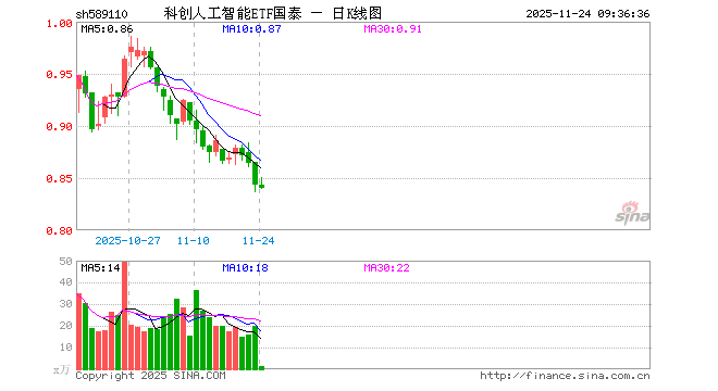 科创人工智能ETF国泰(589110)业绩比较基准为上证科创板人工智能指数收益率,管理人为国泰基金管理有限公司,基金经理为麻绎文,成立(2025-09-26)以来回报为-15.94%,近一个月回报为-9.38%。