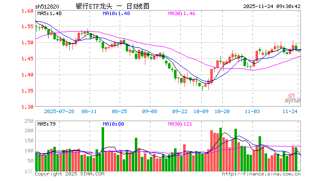 11月24日,银行ETF龙头(512820)开盘跌0.27%,报1.471元。银行ETF龙头(512820)重仓股方面,招商银行开盘涨0.23%,兴业银行涨0.19%,工商银行跌0.61%,农业银行跌0.12%,交通银行涨0.00%,江苏银行跌0.09%,浦发银行涨0.17%,平安银行涨0.09%,民生银行涨0.24%,上海银行涨0.10%。