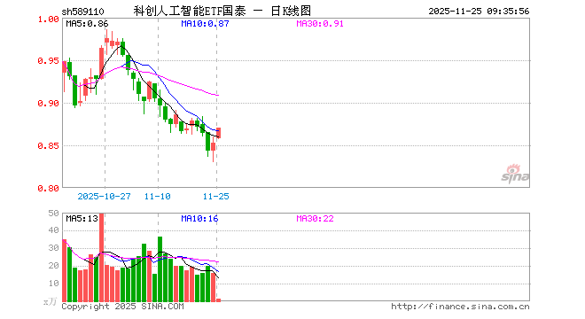 科创人工智能ETF国泰(589110)业绩比较基准为上证科创板人工智能指数收益率,管理人为国泰基金管理有限公司,基金经理为麻绎文,成立(2025-09-26)以来回报为-14.63%,近一个月回报为-11.63%。